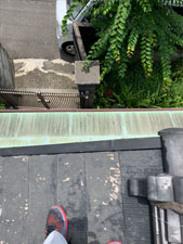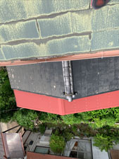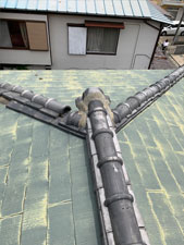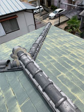 屋根を登ると、スレート瓦に和瓦の棟瓦が乗っており変わった納まりでした。