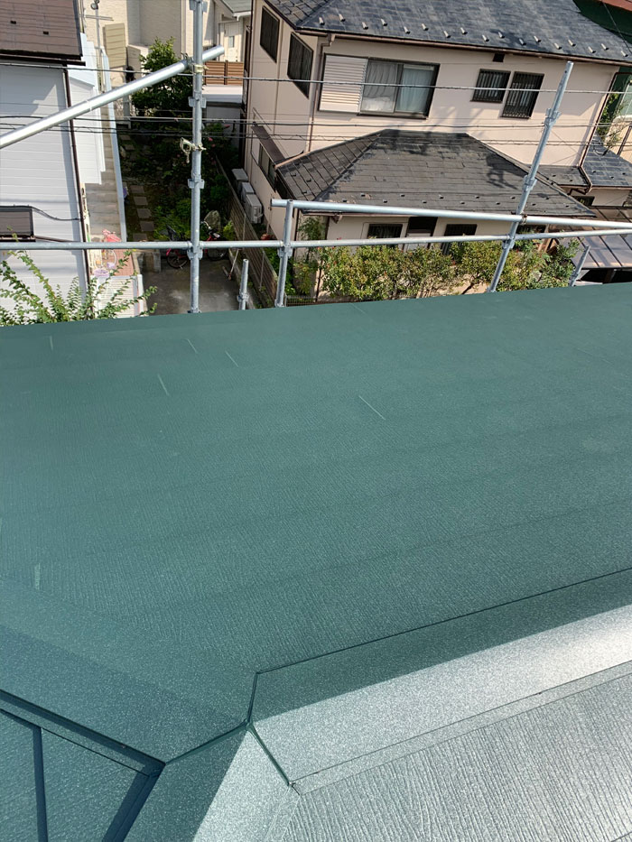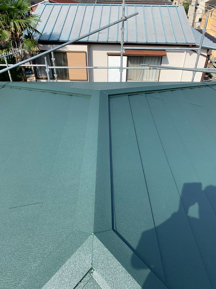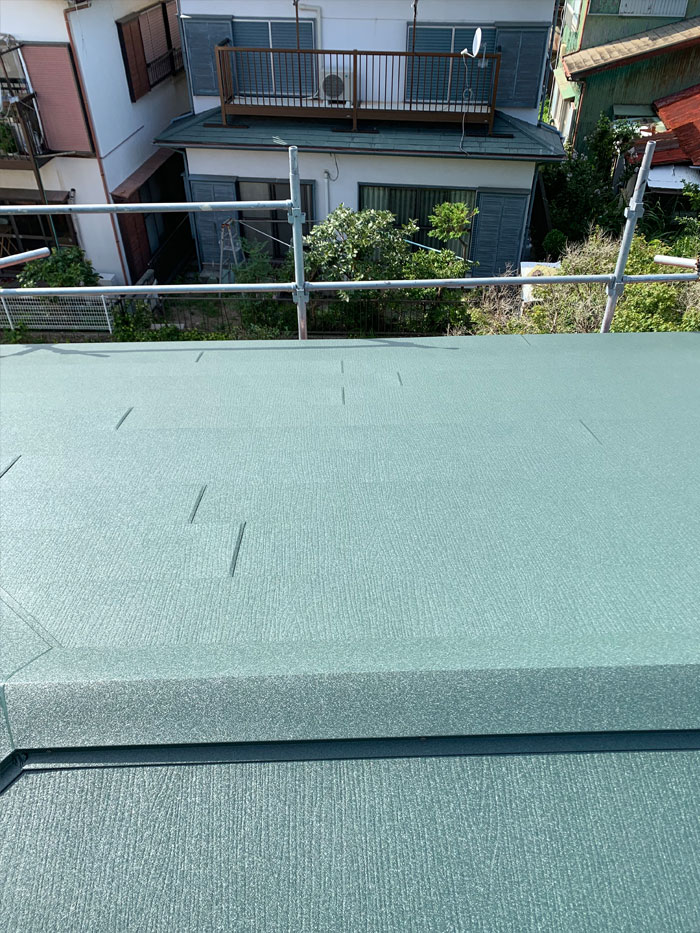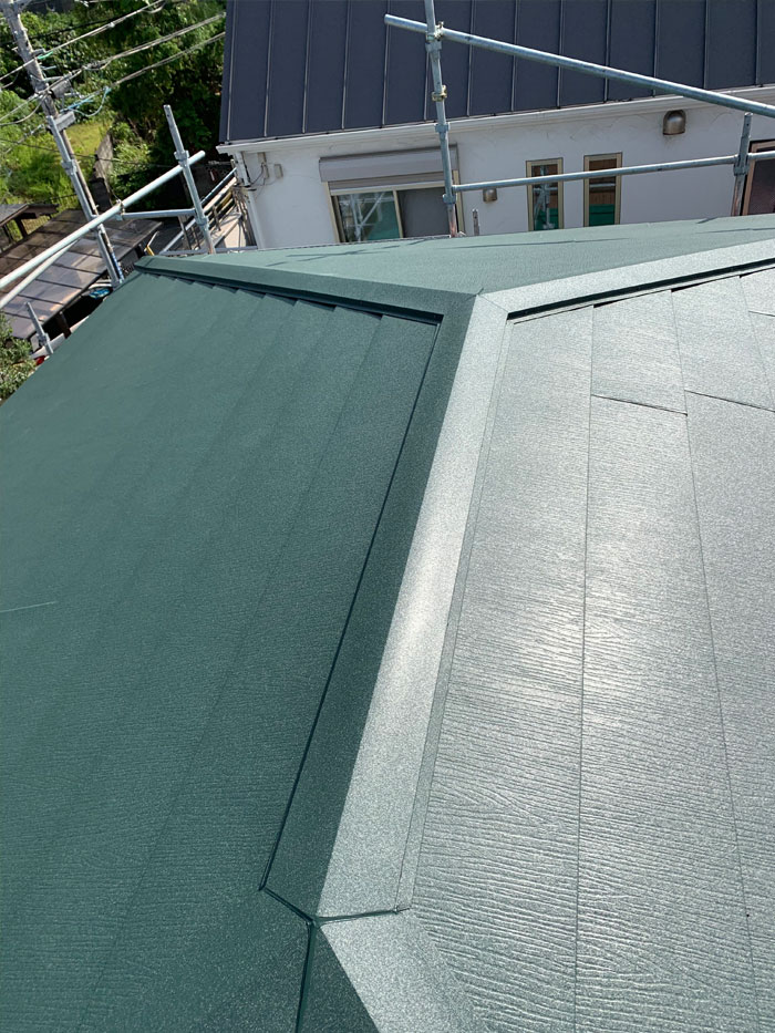 屋根材:アイジー工業 スーパーガルテクト 塗料:エスケー化研 ヤネフレッシュ | ||