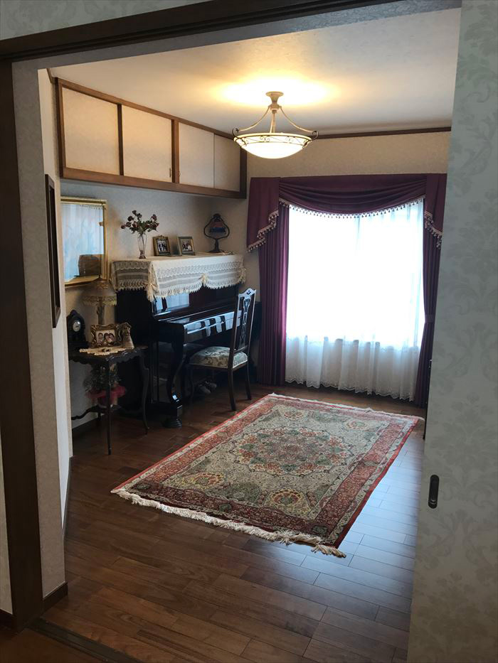 以前まで来客用に使用していた和室が現在ではあまり使用されていないとの事でしたので和室を改装してステンドグラスを飾るにふさわしい英国アンティーク風なイメージで改装致しました。