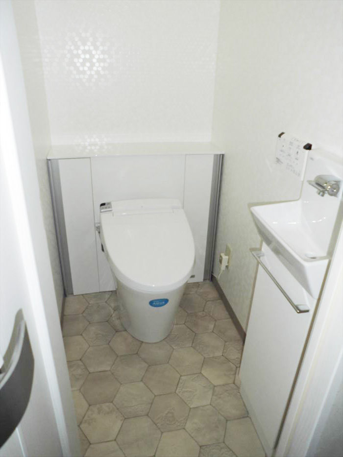 | 商品仕様 | トイレ:LIXIL リフォレI型 手洗器:LIXIL コフレル クロス:サンゲツ リフォームセレクション(品番:77-847) クッションフロア:サンゲツ HMFLOOR HM級(品番:HM-6004) |
